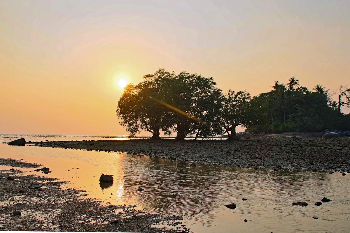 Am Ende der Bucht liegen zwei kleine Inseln im Wasser, welche du bei Ebbe gut zu Fuß erreichst. Sie sehen gerade im Sonnenuntergang wirklich sehr malerisch aus. Da der Strand nur über die Straße des Nationalparks erreicht werden kann, musst du eine geringe Gebühr als Eintritt bezahlen. Der kleine Nationalpark lohnt sich selber nicht wirklich, aber mit etwas Glück siehst du hübsche Vögel und in den Mangroven Reptilien und Schildkröten.