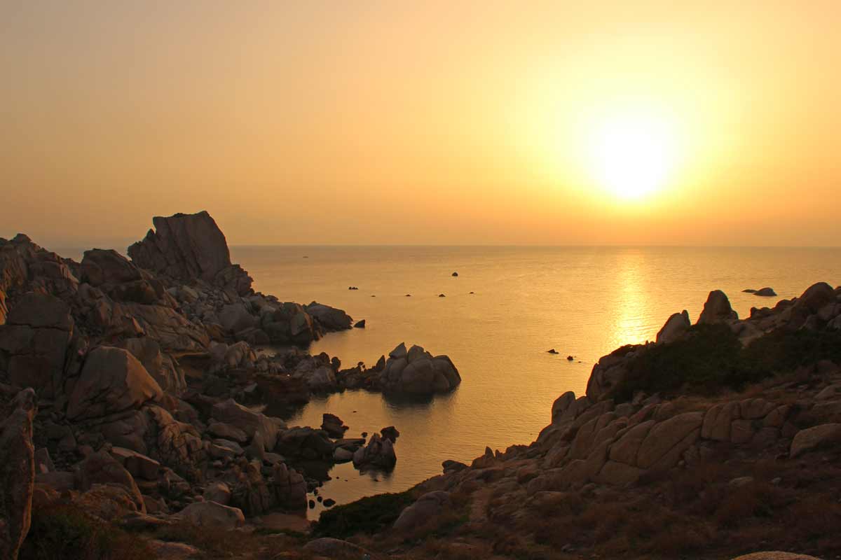 Besonders stimmungsvoll ist es am Capo Testa am frühen Abend zur golden hour. Der warme Ton der Felsen leuchtet so schön in der untergehenden Sonne. Nicht umsonst hatten sich in den 1970er Jahren einige Hippies im "Valle de la Luna" angesiedelt und zwischen den Felsen campiert. Die Aussteiger hatten schon damals einen guten Riecher für wunderschöne Orte. Das "Tal des Mondes" hat seinen Namen von der mondähnlichen Felslandschaft hier am Capo Testa.