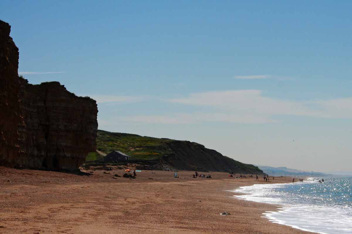 Jetzt hast du dir eine Pause am Meer verdient und deshalb fahren wir noch ein kleines Stück weiter an die Jurassic Coast, einer der Gegenden, die im Englischen gerne „Area of outstanding natural beauty“ (AONB) genannt werden. Die Jurassic Coast (Jura Küste) ist ein 150km langer Küstenstreifen an Englands Südküste durch Dorset und Devon, dessen steile Felswände wegen ihrer beeindruckenden Formationen und zahlreicher Fossilienfunde berühmt sind. Seit 2001 gehört dieser Küstenstreifen zum UNESCO Weltkulturerbe. Chesil Beach ist nicht der berühmteste Teil, aber ein durchaus sehenswerter und dafür nicht so überlaufener Bereich der Jurassic Coast. Jedoch warte Chesil Beach mit einer geologischen Besonderheit auf, denn der Küste ist eine 20km lange Kieselbank vorgelagert und bildet mit dem Land eine Flutlagune, an der sich starke Strömungen und Wellen brechen. Hier kannst du zwar nicht baden, aber an der Felskante entlang wandern und dir die fantastischen Felsformationen ansehen.