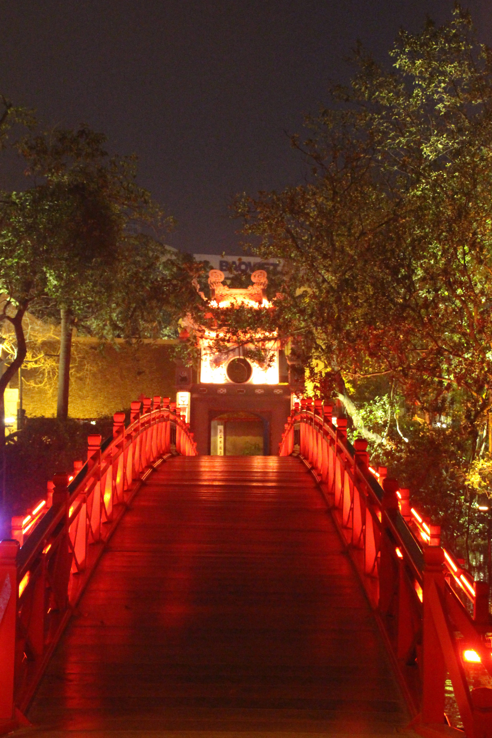 Nach einer Pause in der wohltemperierten Kühle des Metropole Hotels, wo der Lärm und das Chaos einer gediegenen und luxuriösen Stille gewichen ist, sind wir bereit einen zweiten Blick auf die vietnamesische Hauptstadt zu werfen. Zu Fuß starten wir den kurzen Weg hinunter zum Hoan Kiem See, dem Herzstück Hanois. Wir haben Glück, es ist Samstag Abend und somit ist die Gegend um den See für den Verkehr gesperrt und wir können uns ungehindert und frei bewegen. Rund um den See stehen koloniale, französisch inspirierte Villen und Gebäude, welche die kommunistische und trostlose Architektur der Außenbezirken schnell vergessen lässt. Gerade jetzt am Abend versprüht der See mit dem Schildkrötenturm, der roten The-Huc- Brücke und dem Jadenberg Tempel(Ngoc-Son-Tempel) eine wunderschöne Atmosphäre.