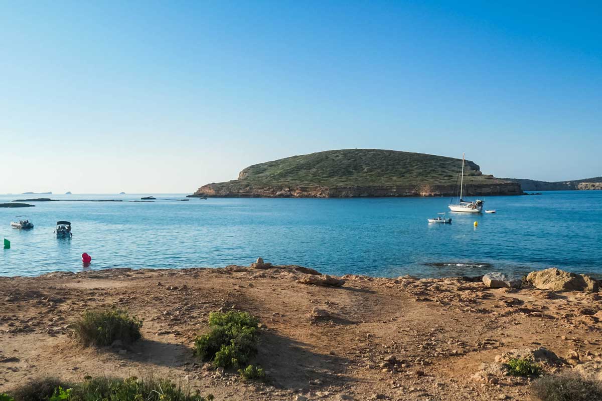 Eine meiner absoluten Lieblingsbuchten ist die winzige Cala Gracionetta am Rand von San Antoni. Hier musst du früh morgens hinkommen. Dann liegt sie zwar noch im Schatten, gehört dir dafür aber fast alleine. Sobald die Sonne den Zenit überschritten hat, liegt man Handtuch an Handtuch. Die Bucht ist eigentlich nur zu Fuss über Felsen von der daneben liegenden , grösseren Cala Gracio zu erreichen, aber es gibt weit oben auf der Hauptstrasse von San Antonio nach Sant Agnes auch noch einen Abzweig zum Strand.