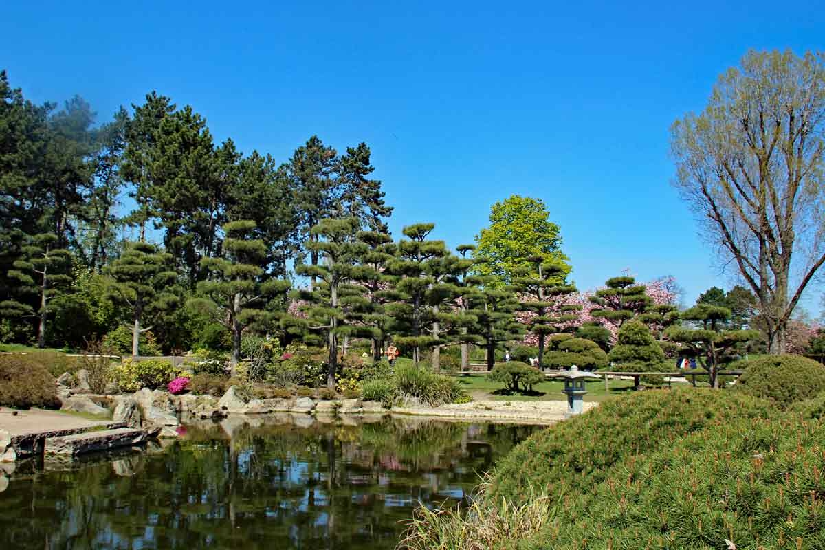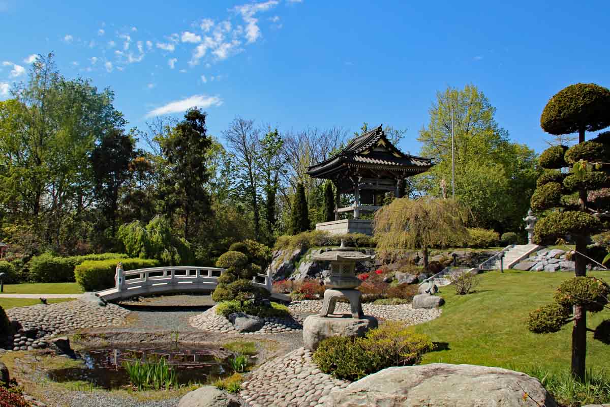 Die größte japanische Gemeinde in Deutschland hat 1975 den Düsseldorfern diesen japanischen Garten als Zeichen ihrer Verbundenheit mit dem Land geschenkt. Auf dem über 5000qm großen Gelände am nördlichen Rand des Nordparks wachsen in Wolkenform geschnittene Schwarzkiefern und filigrane Fächerahorne. Diese leuchten besonders im Herbst in atembraubenden Rottönen. Natürlich findest du auch die klassischen Kirschbäume, die mit ihrem betörenden Duft und ihrer luftigen Blüten Ende April den Betrachter verzauber.