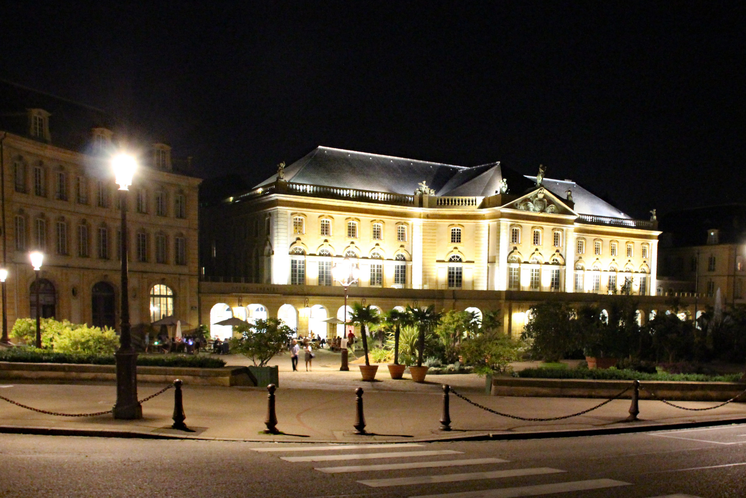 Von hier aus kommst du über die Brücke auf die beeindruckende Place de la Comedie, wo die Oper und das Theater stehen. Das Gebäudeensemble aus gelben Sandstein wurde zwischen 1739 und 1753 erbaut und das Theater gehört heute noch zu den ältesten, bespielten Orten in ganz Frankreich. Daneben lädt das Restaurant El Theatris auf seine schöne Terrasse oder auch in den festlichen Saal zum essen ein. Es gibt klassische Brasseriegerichte mit einen modernen Touch. Abends musst du reservieren.