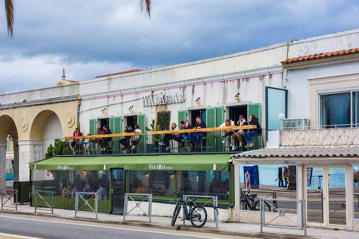 Inzwischen sind in den restaurierten Gebäuden hautpsächlich Restaurants und Bars untergebracht, jedoch die Dächer sind leider nicht mehr zugänglich. Aber die Restaurants haben alle Balkone zum Meer hin und du sitzt sehr gemütlich und geschützt mit einem 1a-Platz für den Sonnenuntergang und um dem Treiben auf dem Quai des Etas-Unis (Verlängerung der Promenade des Anglais) zu zusehen. Aber beachte: Die Plätze sind heiß begehrt, komm rechtzeitig, wenn du den Sonnenuntergang von hier aus beobachten willst. Die Sonne geht allerdings an dieser Stelle nicht frontal im Meer unter, aber selbst ohne den sinkenden Feuerball ist es ein wunderschöner Platz für einen Sundowner.