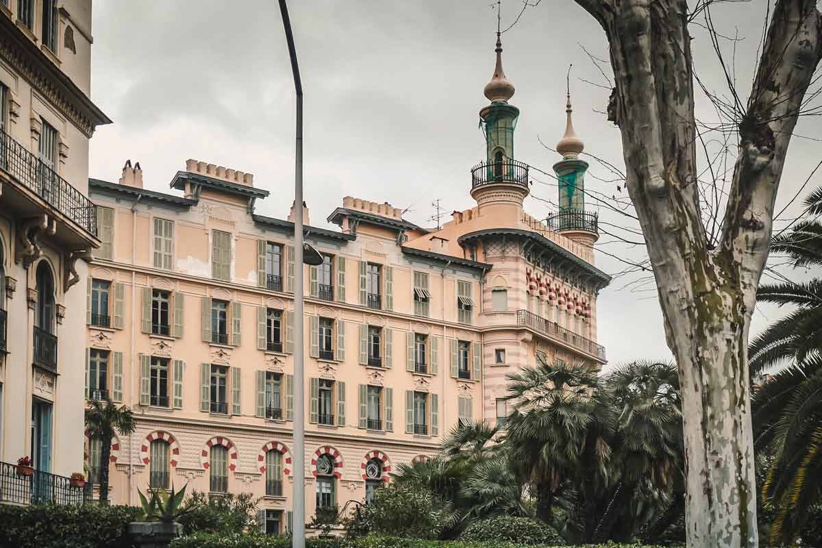 Nach deinem Abstecher ins römische Nizza und dem Klostergarten spaziere jetzt den Boulevard de Cimiez bergabwärts. Hier kommst du an all den großartigen Belle- Epoque Villen vorbei, die während der Jahrhundertwende von Engländern, Russen und anderen Emigranten gebaut wurden. Besonders prachtvoll ist das ehemalige Hotel Regina und die Villa Alhambra. Aber auch viele namenlose Palais sind echte Hingucker und machen den Spaziergang den Hang hinunter zu einem echten Highlight. Auf der Höhe des Marc Chagalle Museums biegtst du ab in den Stadteil Libération.