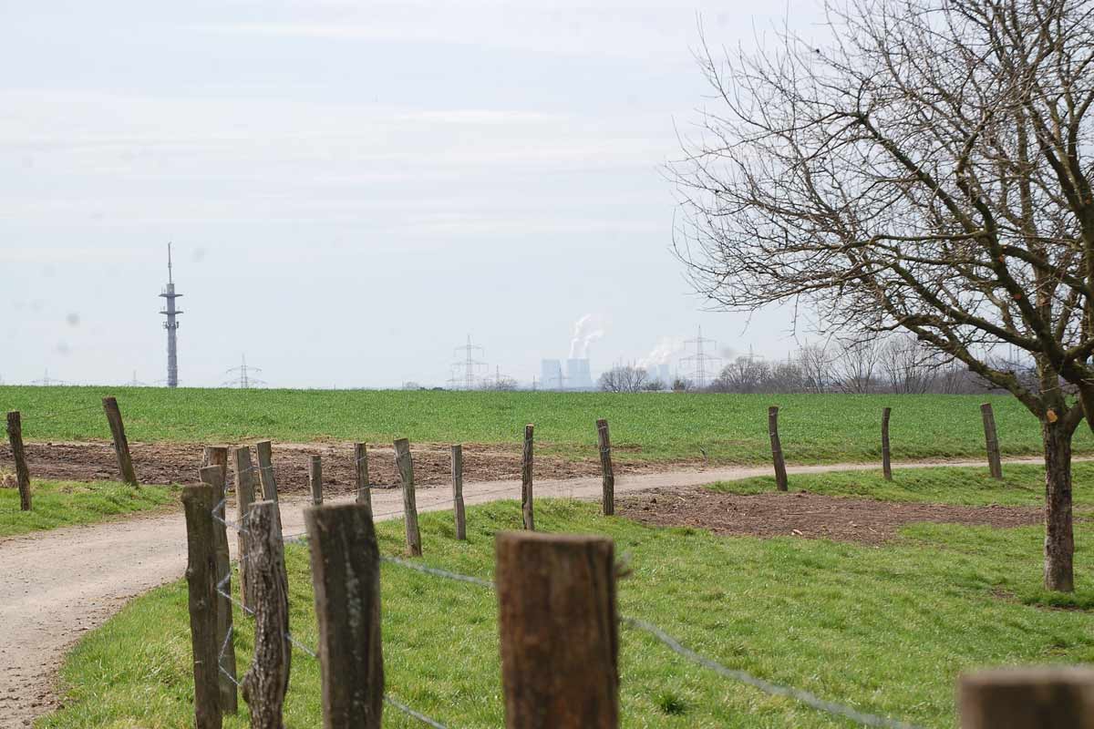 Eine Variation zu dieser Runde gibt es auch: Wenn du die Eisenbahnbrücke unterquert hast, nimmst du an der Gabelung nicht den linken, sondern den rechten Weg entlang der Bahnlinie. Folgst du diesem kommst du bald über eine weitere Eisenbahnbrücke und dann leicht bergauf auf einen Weg durch landwirtschaftliche Flächen. Du erreichst den Ortsteil Imbach. Von hier oben hast du einen tollen Panoramablick bis nach Köln. Geh den Weg weiter und quere eine Straße. In dem Wohngebiet findest du nach knapp 200 Metern auf der rechten Seite das Landcafé Flocke. Es gehört zu einem Reitstall. Besonders schön sitzt du auf der sonnigen Terrasse unter Spalierbäumen. Du solltest aber reservieren, denn es ist gerade an sonnigen Tagen meist sehr voll. Unterhalb des Cafés kannst du dann einem Weg zurück zur Eisenbahn folgen. Allerdings läufst du hier länger über Straßen und durch Wohngebiete.