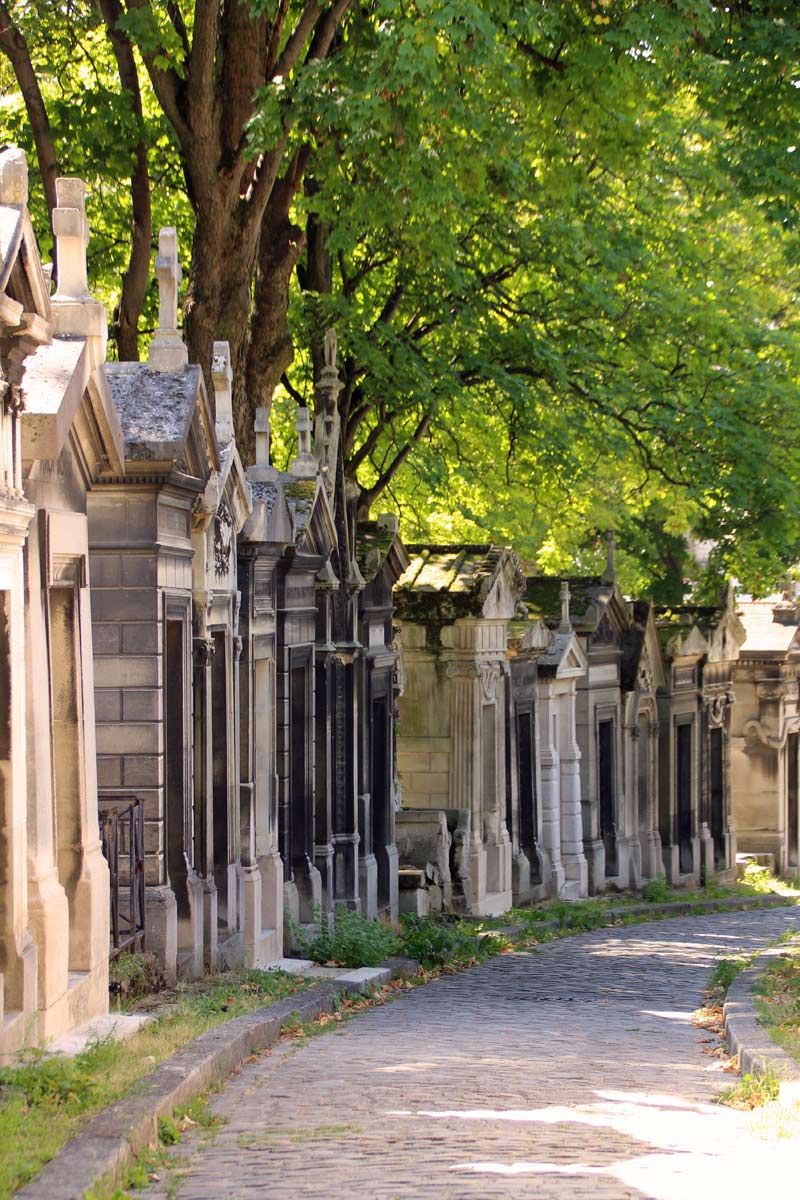 Hier haben viele Berühmtheiten ihre letzte Ruhestätte gefunden, darunter Frédéric Chopin, Edith Piaf, Oscar Wilde und Jim Morrison. Aber auch ohne bestimmte Grabstätten zu suchen, ist ein Gang durch die mit Platanen gesäumten Alleen entlang der unzähligen, teilweise stark verfallenen Grabhäuser höchst romantisch. Wenn du Glück hast, triffst du einige der zahlreichen Friedhofskatzen an, die sich völlig ungeniert auf den Grabsteinen in der Sonne räkeln. Immerhin fast 400 Samtpfötchen sollen hier wohnen.
