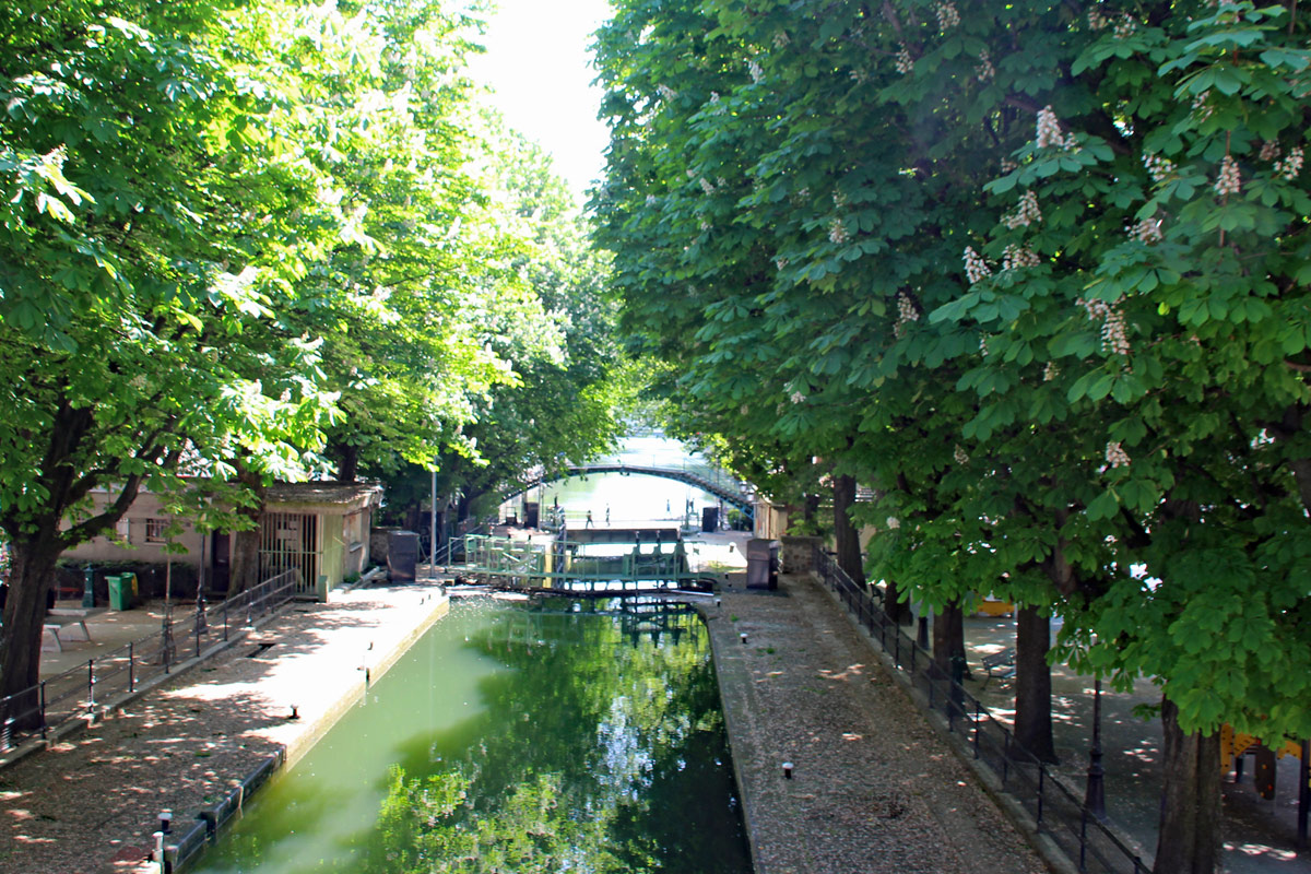 Abseits der Massen kannst du einen sehr romantischen Spaziergang entlang des Ufers des Canal Saint Martin unternehmen. Nimm dazu die Metro bis zur Station "Republique". Schau dich erste einmal in Ruhe auf dem großen Platz um, wirf einen Blick auf die hohe goldene Mariannen-Statue, das Symbol der französischen Revolution und heute Sinnbild für die Freiheit Frankreichs. Schlage dann in die Rue du Faubourg du Temple ein und folge ihr, bis du auf den Square Frederick Lemaitre stößt. Hier fließt der Canal Saint Martin aus dem Tunnel an die Oberfläche. Folge dem Kanal den Quai de Valmy entlang. Begib dich auf eine der zahlreichen filigranen hoch geschwungenen Metallbrücken und schau dir an, wie die Ausflugsboote durch die Schleusen fahren. Wenn du magst, besorge dir vorher ein kleines Picnic und genieße es am schattigen Ufer unter den Kastanien. Mehr Infos hierzu findest du auch unter meinem Beitrag Paris idyllisch: Eine Fahrt auf dem Canal Saint Martin