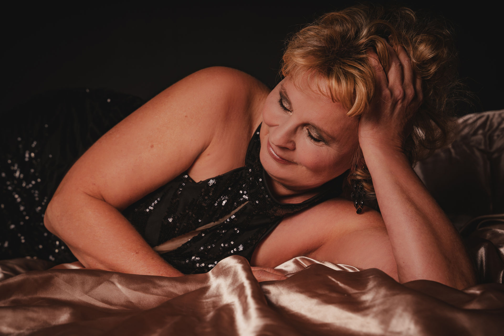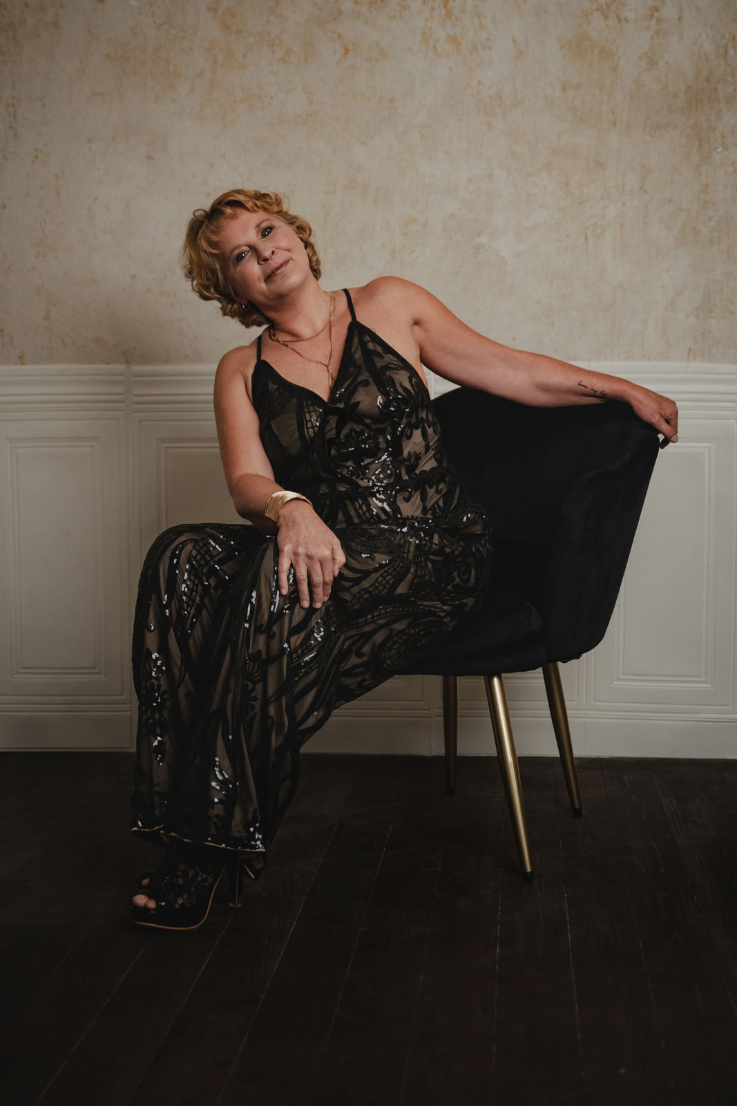 Knapp zwei Wochen später stehe ich wieder vor der kleinen Haustür in Bornheim. Wir haben uns verabredet die entstandenden Bilder anzusehen und auszuwählen. Ich bin ein bisschen aufgeregt und neugierig, ob ich die Frau auf den Bildern wirklich als mein Selbst erkennen würde. Obwohl Susanne und ich uns erst einmal gesehen haben, begrüssten wir uns wie alte Bekannte. Diesmal ist das Studio in ein Bohozimmer verwandelt, was mich direkt anspricht. Susanne klappt ihren Laptop auf und da ist sie: Die Frau, die hier vor zwei Wochen aus dem Studio gegangen ist. Das Anschauen der Bilder hat etwas magisches, denn ich kann meine Verwandlung von damals hier live und in Farbe noch einmal erleben. Von der modernen Mittfünfzigeren in Jeans und Top zu einer weiblichen Diva mit Glamour. Es ist einfach wunderbar. Das Ergebnis ist umwerfen, wenn auch tatsächlich ein bisschen befremdlich. Ich muss mich erst an diese andere Frau in mir gewöhnen.