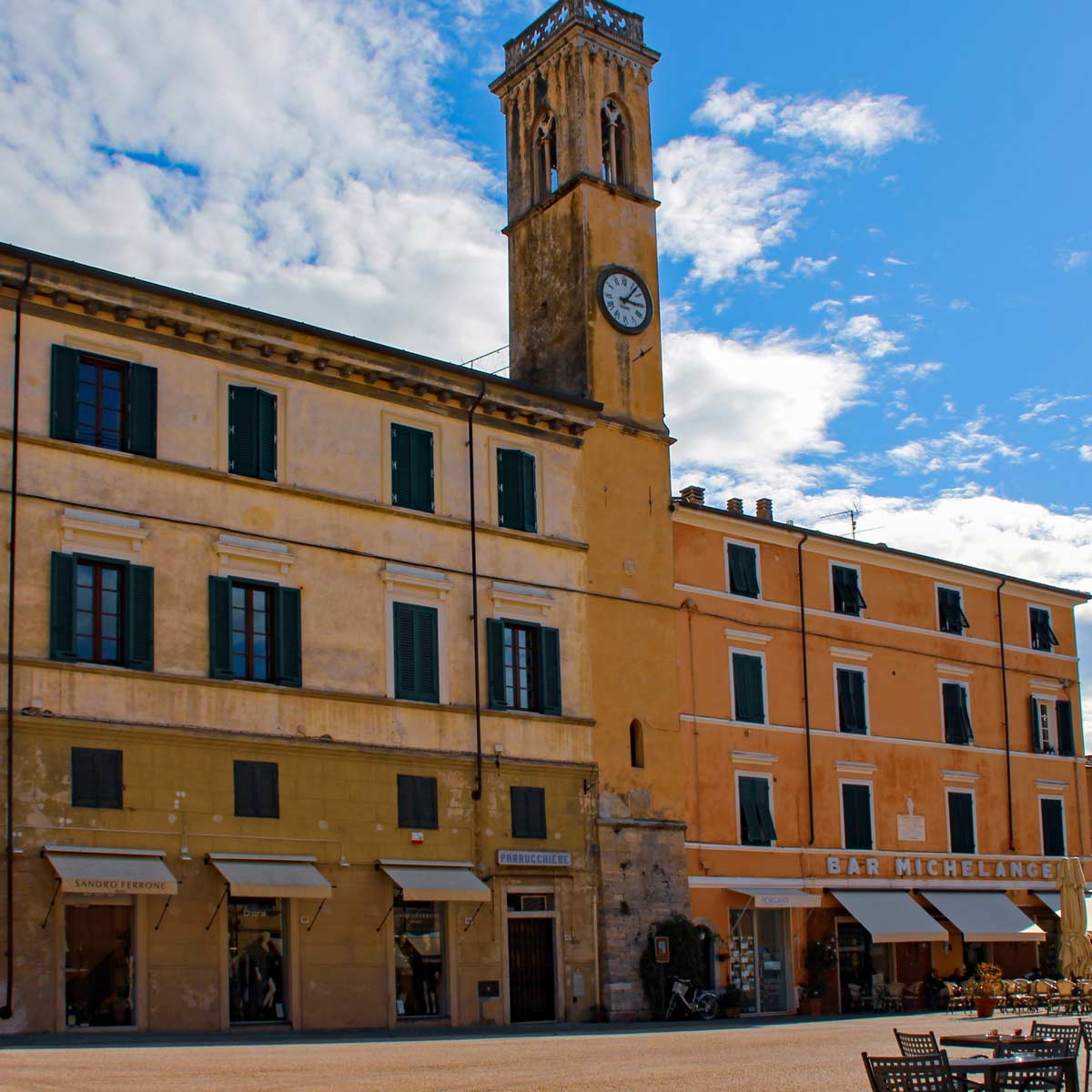 Vom Pontile führt eine palmenbestandene Allee ins Zentrum des Ortes. Hier gelangst du auf direktem Weg auf die Piazza Garibaldi mit dem Fortino. Das aus dem 17.Jahrhundert stammende Gebäude, welches dem Ort seinen Namen gab, steht in der Mitte des Platzes. Daneben findest du noch einen alten steinernen Brunnen, an welchem früher die Pferde und Ochsen getränkt wurden, die die Fuhrwerke mit den Marmorblöcken zogen. Im Fortino selber ist heute ein sehenswertes Satire- und Karikaturen-Museum untergebracht. Vielleicht mal ein Tipp für schlechteres Wetter.