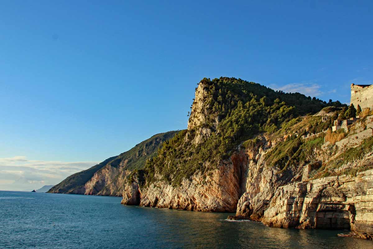 Ebenfalls ein lohnenswertes Ziel ist der kleine Hafenort Portovenere, der schon in Ligurien liegt. Von Forte dei Marmi erreichst du ihn in etwas über einer Stunde. Das bunte Dorf an der ligurischen Küste gehört zwar nicht mehr zu den Cinque Terre Dörfern, die eine Bucht weiter liegen, aber es steht ihnen in nichts nach. Die blauen und roten Häuschen schmiegen sich an die steilen Felsen mit Blick auf die Bucht von La Spezia.